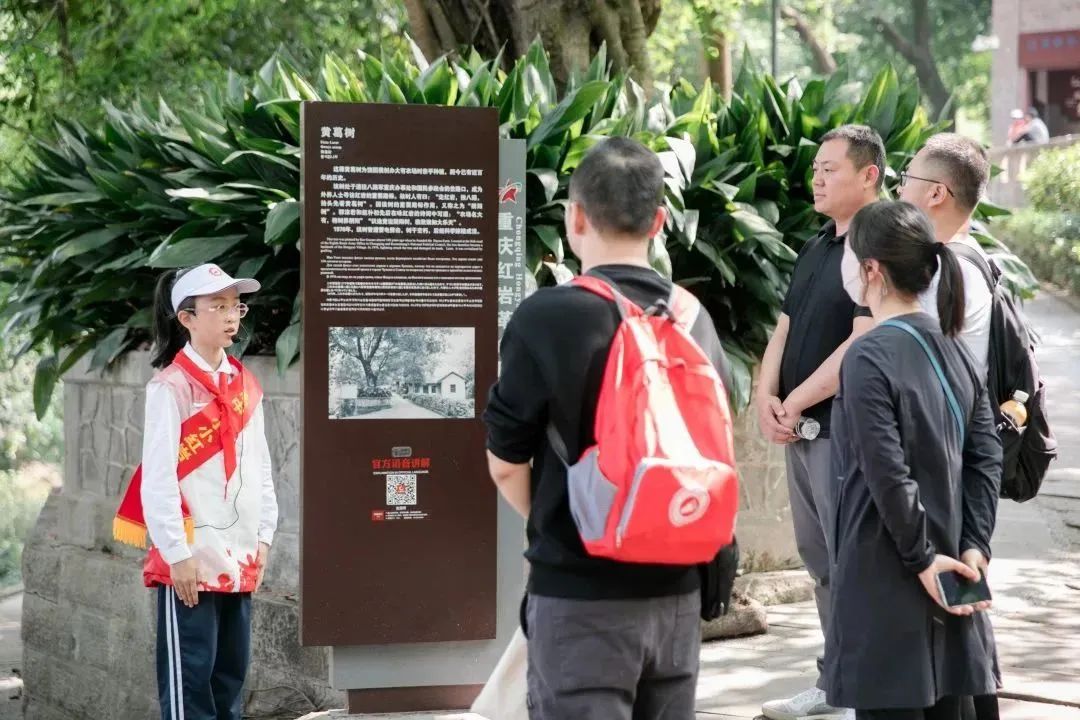 小小红岩讲解员们纷纷进行讲解,声情并茂地讲述了《新华日报》印刷机、饶国模故居、大有农场、黄葛树等红色故事。在场的游客朋友们表示,同学们的讲解很专业,而且有自己的风格和表达方式,让大家更听得进去、听得明白。