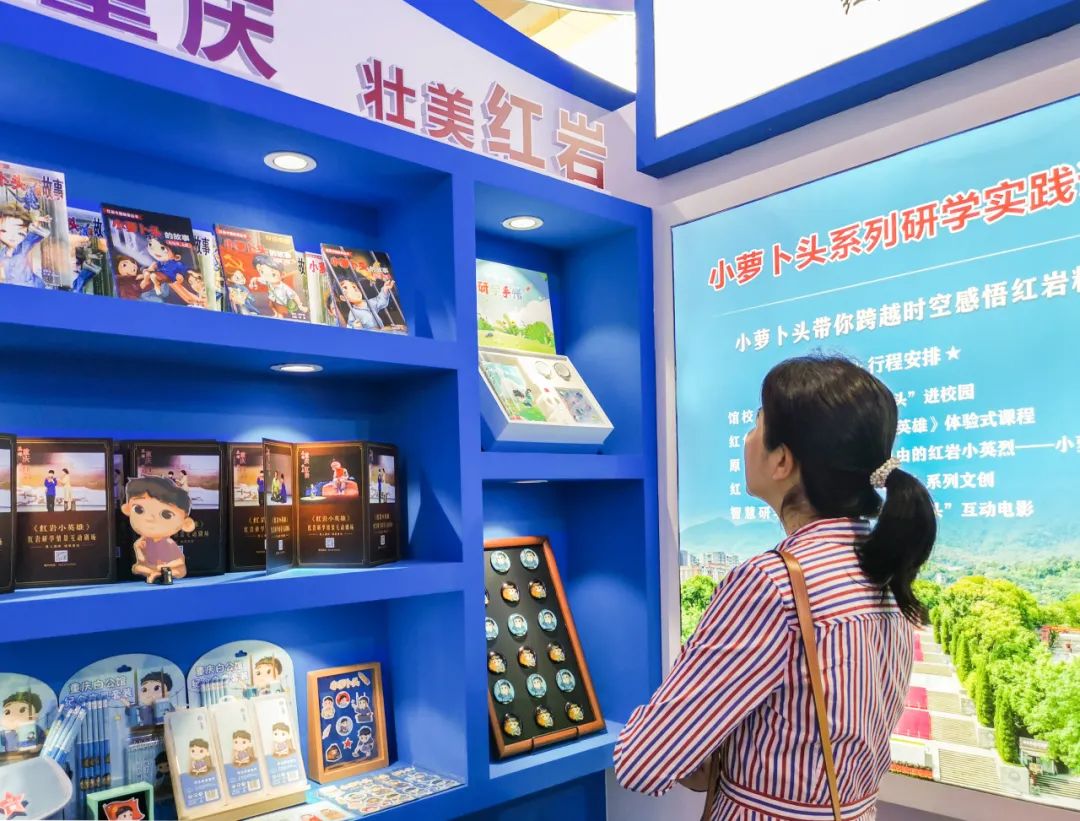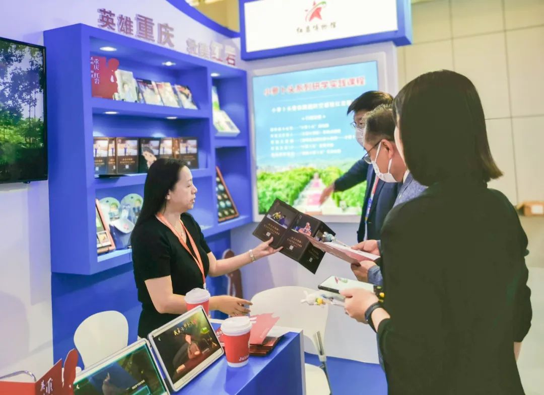 2023海丝之路文化和旅游博览会期间,重庆红岩革命历史博物馆向观众们热情介绍重庆红岩研学教育实践基地,包括研发的课程、举行的活动、开发的文创等,得到广泛的关注与认可。