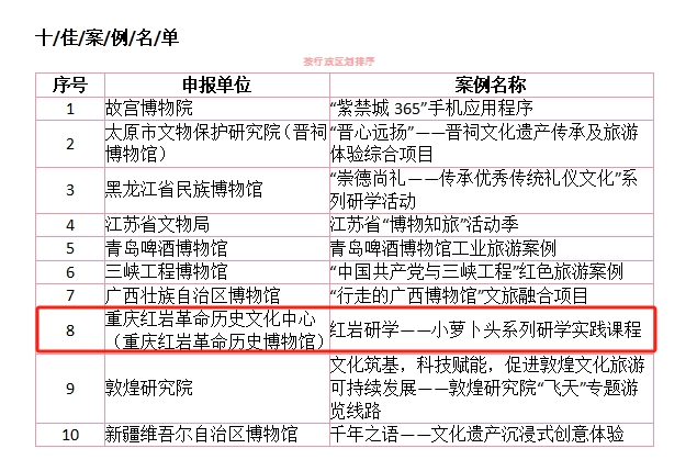 红岩研学——“小萝卜头”系列研学实践课程荣获2022年全国十佳文化遗产旅游案例
