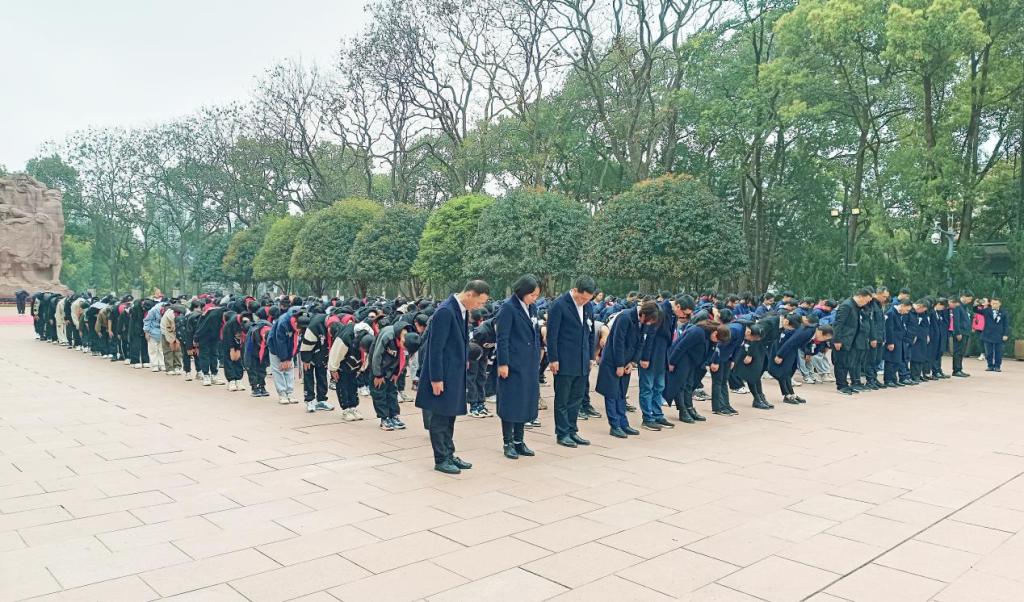 重庆市沙坪坝区五云实验学校、云阳县平湖初级中学的同学们驻足烈士墓前,以鞠躬、默哀、敬献花圈的方式缅怀先烈、祭奠忠魂,向为祖国捐躯的革命烈士表达深切的哀思和敬仰之情。