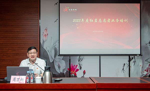 为全面学习贯彻习近平总书记对深入开展学雷锋活动作出的重要指示精神,进一步加强红岩志愿者工作队伍建设,增强红岩志愿者服务意识,提升红岩志愿者服务能力,推动红岩志愿服务工作制度化、规范化、常态化。5月21日,红岩联线管理中心在红岩革命纪念馆开展“学习新思想  传递红岩情”2023年讲解型、宣教型红岩志愿者培训班开班仪式。红岩联线管理中心社会教育工作部部长周万炯、副部长罗雪出席开班仪式,37名来自社会各界的志愿者参加培训。