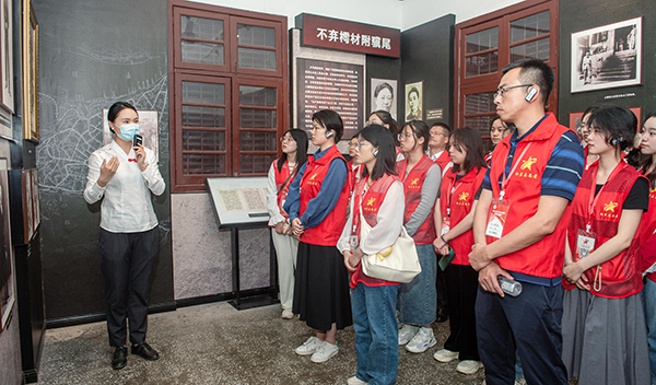 并以现场教学的形式安排了志愿者们来到红岩革命纪念馆教学区,参观“千秋红岩”展览、饶国模旧居和中共中央南方局暨八路军驻重庆办事处旧址,了解南方局的历史,聆听“红岩村女主人饶国模的奉献之歌”,重走当年老一辈革命家走过的小道。