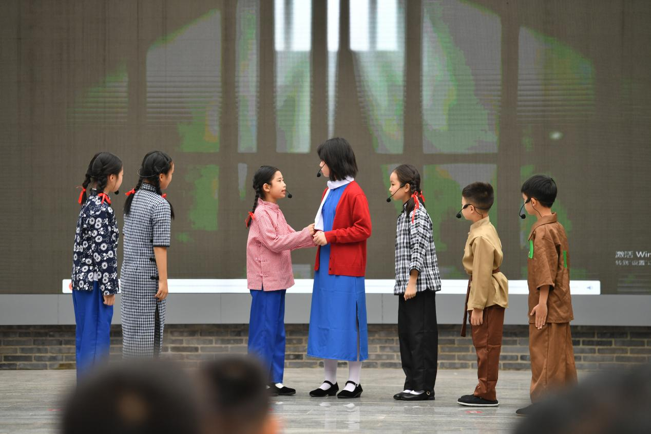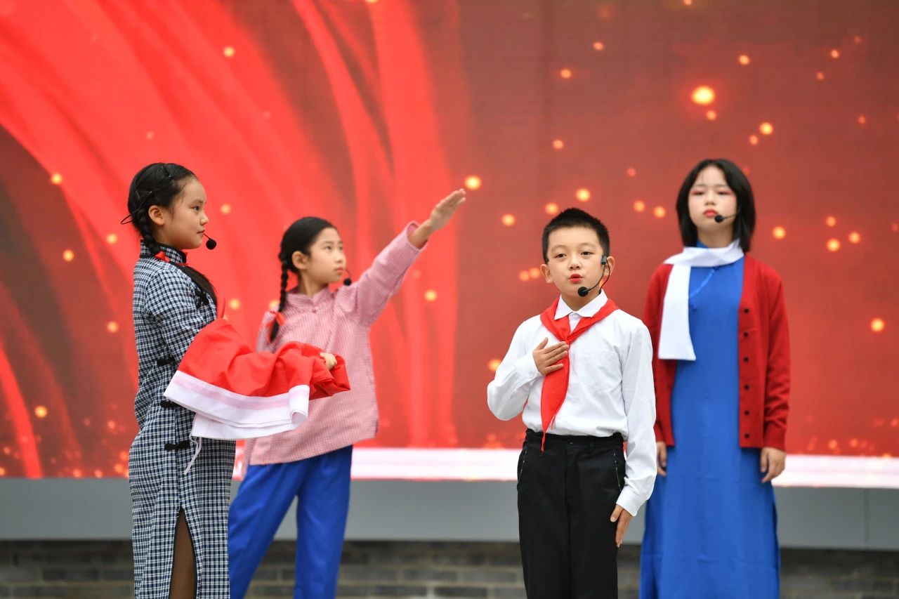 紧接着,杨家坪小学的学生代表带来了红岩思政剧展示,通过生动的表演,再现了革命时期的感人场景,展现了青少年对红色文化的热爱和传承。