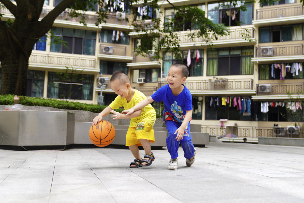 ▲老旧小区改造后,新房子社区的小朋友在休闲广场玩耍。通讯员 秦廷富 摄