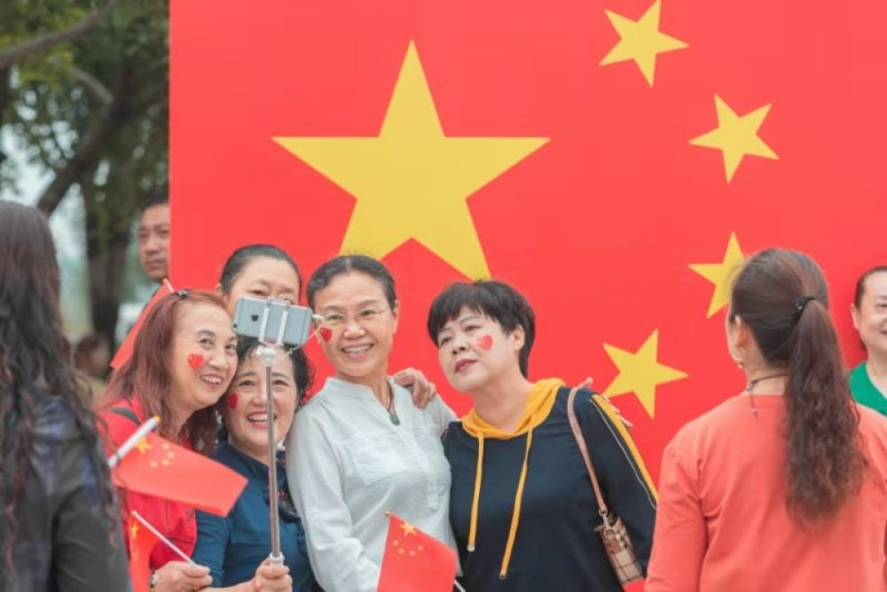 即日起至10月16日,重庆市民及游客无论身在何地,只需拍摄“与国旗合影、为祖国献祝福”照片,与国旗合影,在朋友圈发布九宫格,积累70个“赞”就可以享受91家店的优惠折扣。
