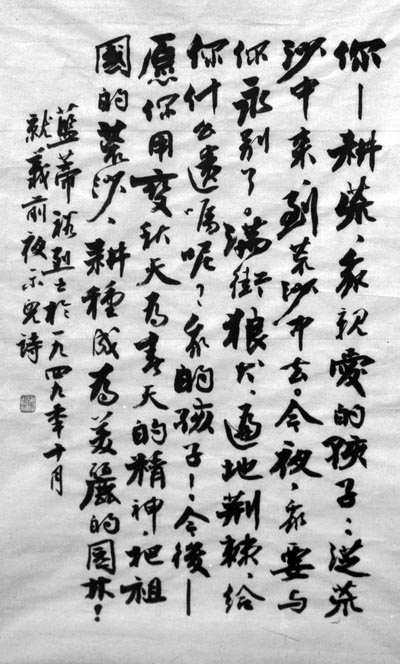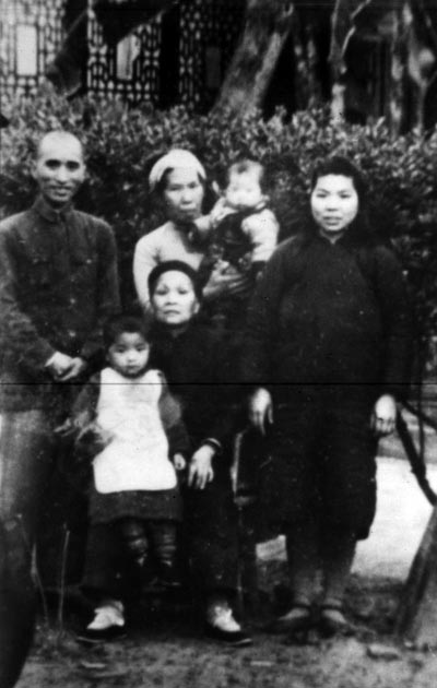 蓝蒂裕全家1946年在梁平县神农池小学,右为蓝蒂裕