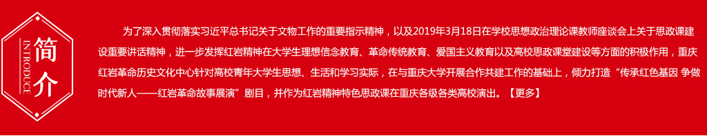 红岩精神,熠熠生辉,10月30日,由重庆红岩革命历史文化中心(重庆红岩革命历史博物馆)、重庆红岩干部学院倾情打造的“涵养政治素质 培育时代新人”红岩革命故事展演走进北京外国语大学。“周恩来,这是一个光荣的名字,不朽的名字,每当我们提起这个名字就感到很温暖、很自豪。”“董必武先生,代表中共前往美国旧金山参加联合国制宪大会,实现了中国共产党首次亮相国际舞台的历史性飞跃。”“苍山埋忠骨,浩气满大川。梦随...[详细]